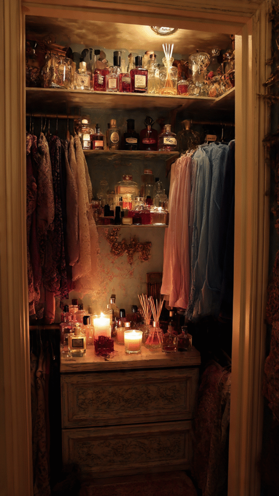 Um guarda-roupa bem cuidado também precisa ser agradável. Utilize sachês perfumados, bolinhas aromáticas ou até saquinhos de lavanda para manter o cheiro das roupas sempre fresco. Além disso, investir em uma boa iluminação — especialmente em closets — ajuda a enxergar melhor e dá um toque de elegância.